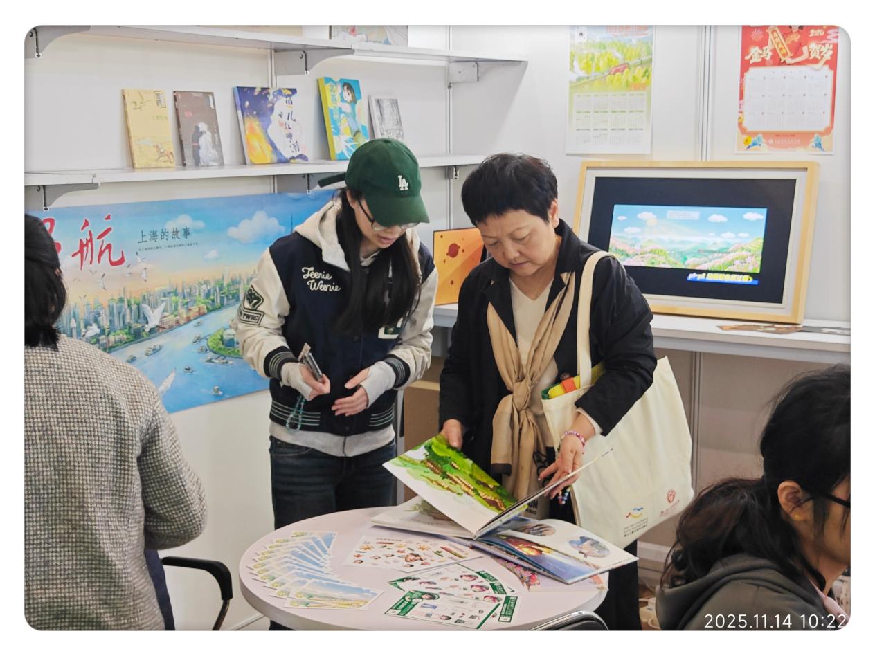 展会现场的互动体验环节人气爆棚,展位化身为充满未来感的数字艺术体验空间,吸引了众多亲子家庭、专业观众及国际友人驻足。VR体验区前排起长队,孩子们戴上VR设备后仿佛瞬间穿越到了绘本《领航:上海的故事》所描绘的隋朝上海,瑰丽景色让孩子们不时发出惊叹,欢笑声此起彼伏;来自法国、日本的童书出版商也专程体验,对VR技术与绘本内容的创新融合表示高度认可,直言“这种沉浸式表达为童书创作开辟了新路径”。