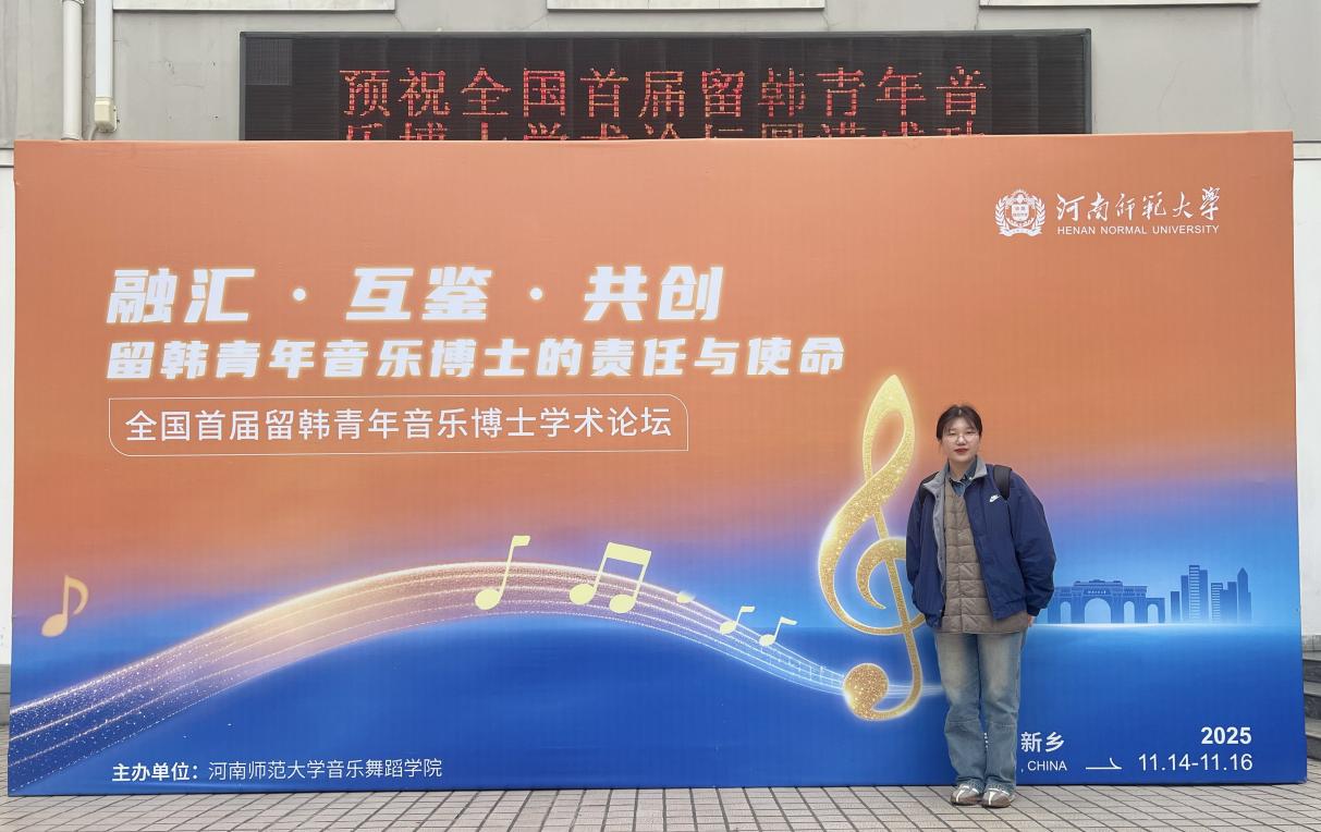 2025年11月14日至16日,由河南师范大学音乐舞蹈学院主办的“全国首届留韩青年音乐博士学术论坛”在河南新乡成功举行。作为留韩音乐博士代表,我院影视编导专业教师陈坤受邀参会,与来自多所知名院校的专家学者展开深入对话,建立了广泛的跨校合作联系。