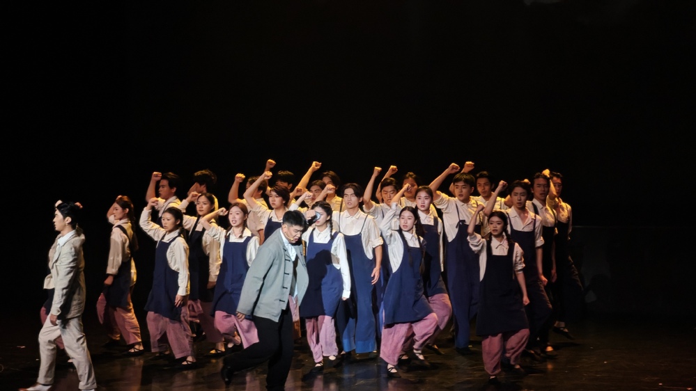 该剧以文献音乐剧为基底,融合原创音乐、肢体剧场与多媒体技术,将“二月罢工”“五卅惨案”等历史事件,转化为具有情感穿透力的视听符号系统。当学生演员在舞台上高呼时,他们不仅是在表演,更是在进行一场红色精神的“具身化实践”——在肢体与声腔的共振中,形成对工人阶级先锋力量的深刻认知。这种通过艺术语言实现的价值观传递,其情感冲击力远超传统课堂的理论说教。