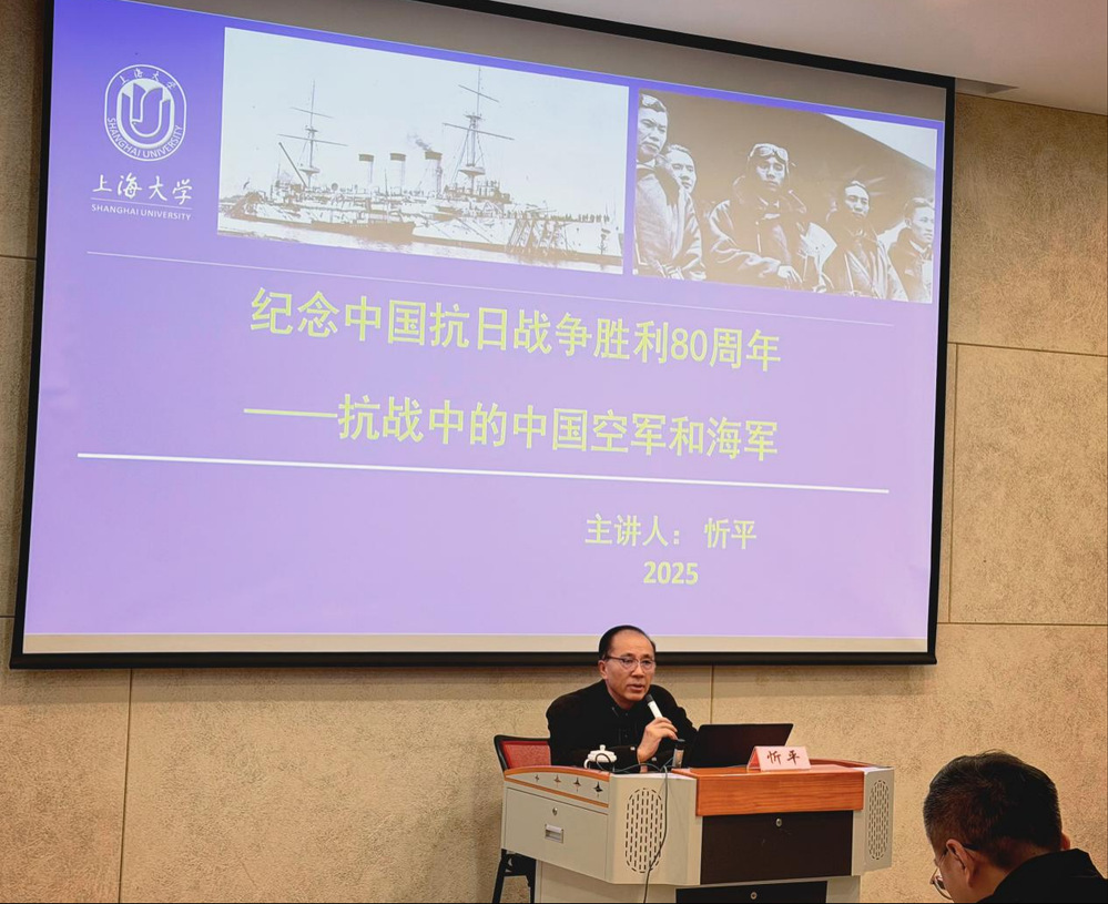 讲座伊始,忻平教授以“如何认识伟大的抗日战争”为切入点,用清晰的逻辑与深厚的史学积淀,带领师生开启了一段重温抗战历史、感悟民族精神的旅程。他从四个维度展开论述,层层递进地剖析了抗战时期中国空军与海军的发展历程及历史意义。