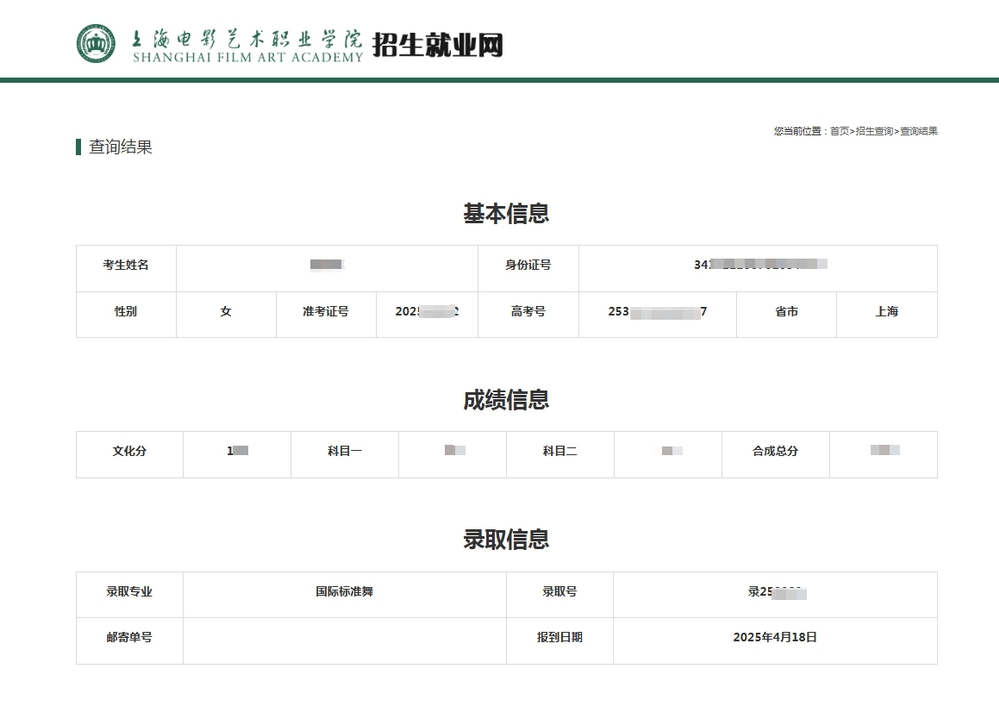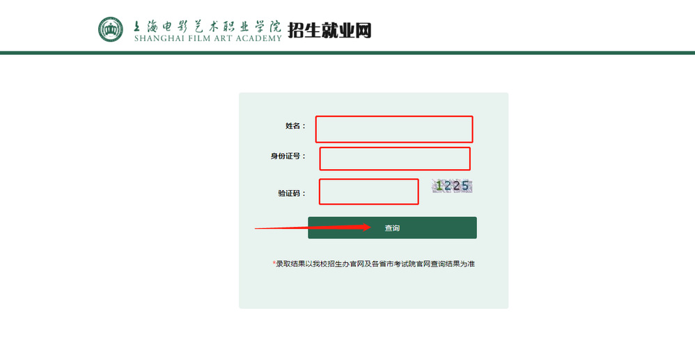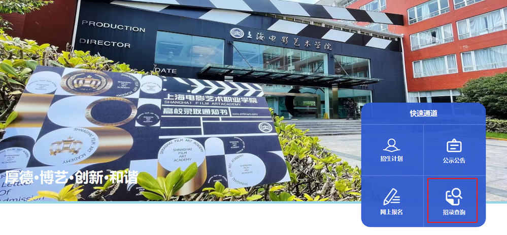 进入网站 招生就业网 (shfilmart.com) ,点击【招录查询】,